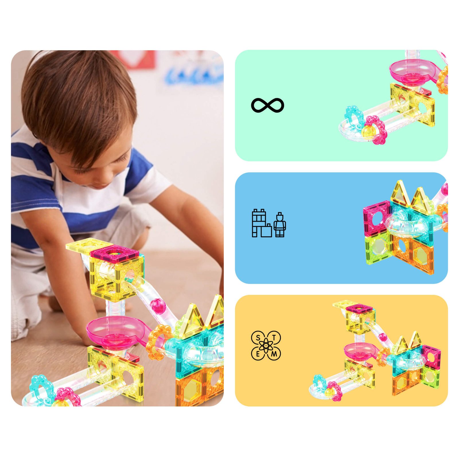Explora la creatividad en cualquier lugar con el set de construcción combinado de pista de canicas portátil y fichas magnéticas de PicassoTiles (SKU: PTMG45). Este set de viaje une dos juguetes de construcción en un diseño compacto que garantiza diversión creativa dondequiera que vayas. Sumérgete en el juego con formas innovadoras y piezas mini en forma de diamante, fomentando habilidades de resolución de problemas y pensamiento crítico incluso en espacios pequeños.