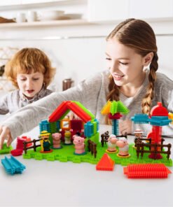 Picassotiles – Juego de 100 piezas de bloques de construcción en 3D con forma de erizo, juego de TOYSTORE de vapor con temática de granja, juego educativo para el desarrollo del cerebro de niños, juguete para preescolar y jardín de infantes, PTB100-FARM